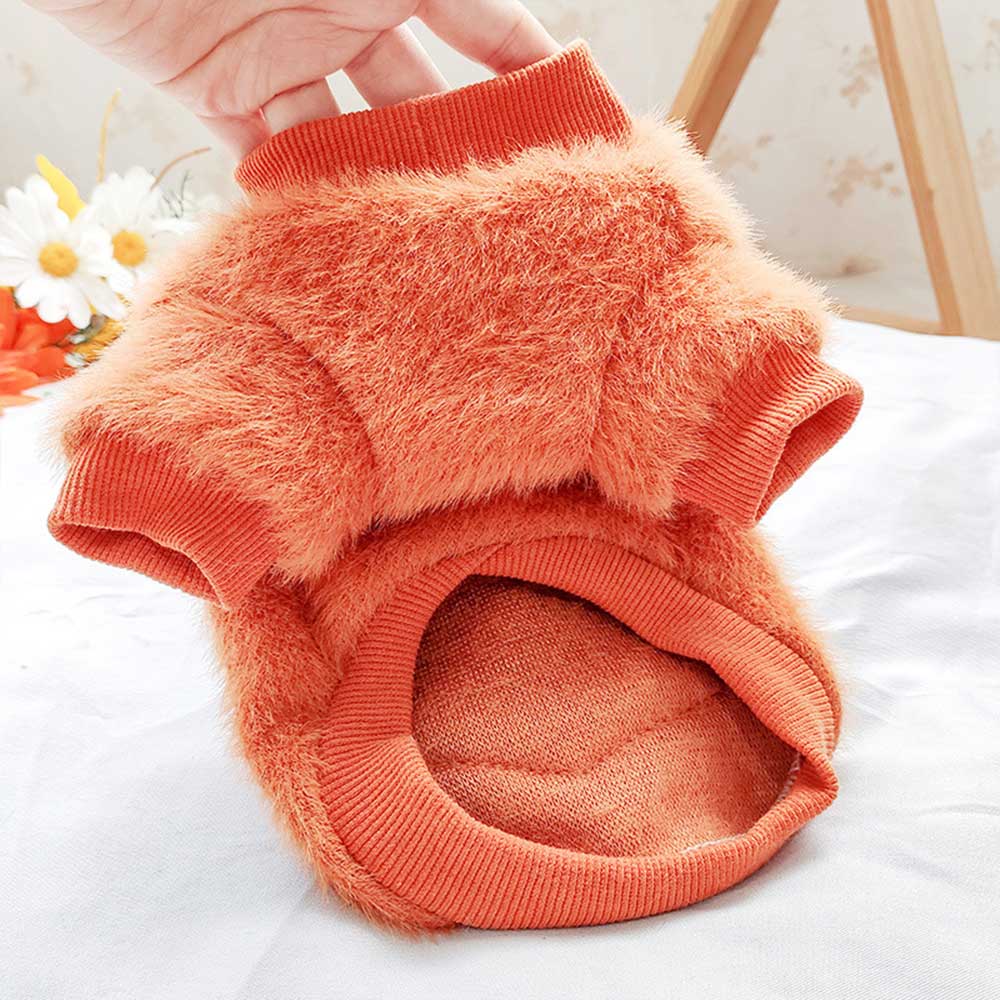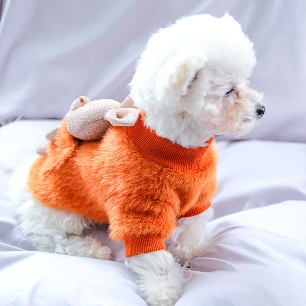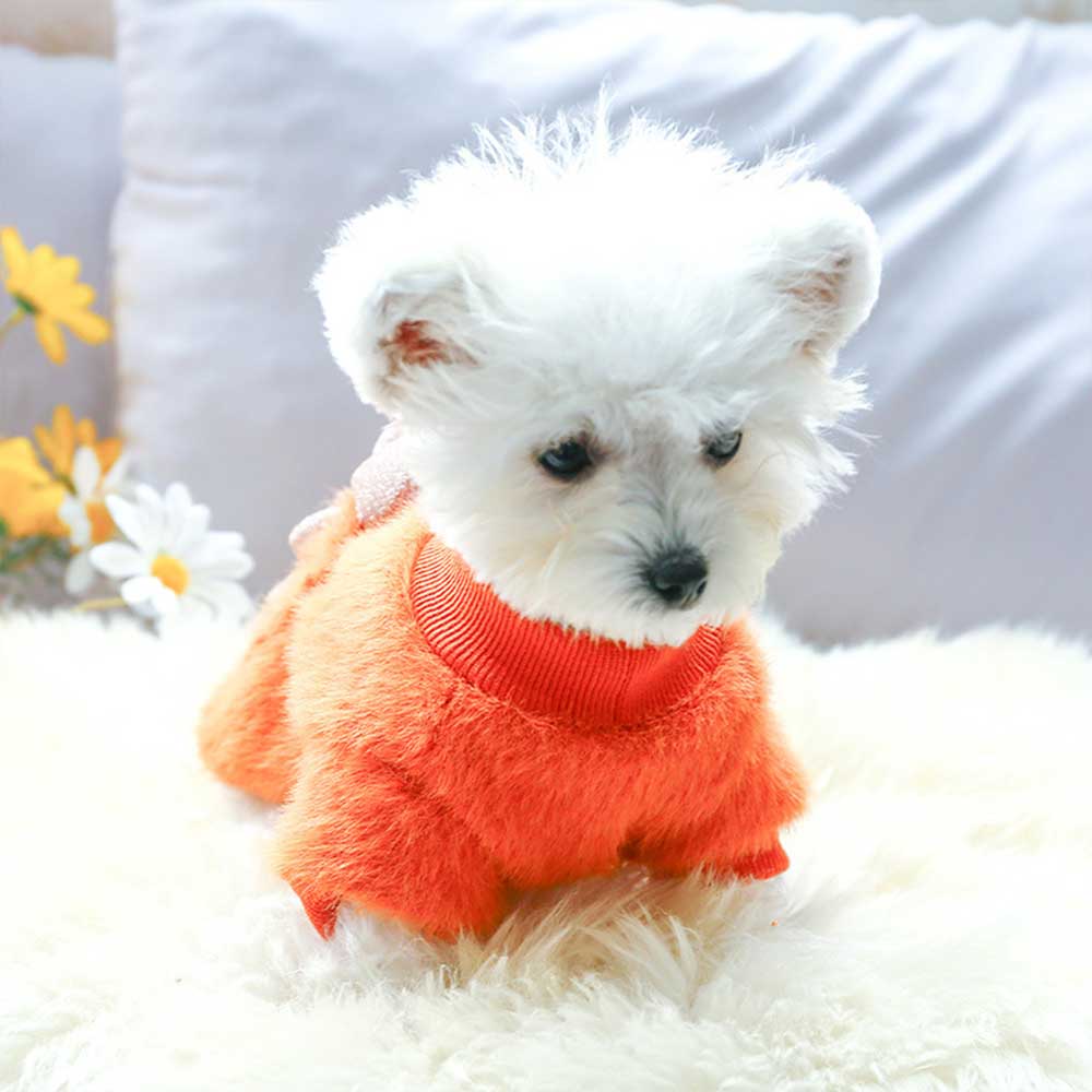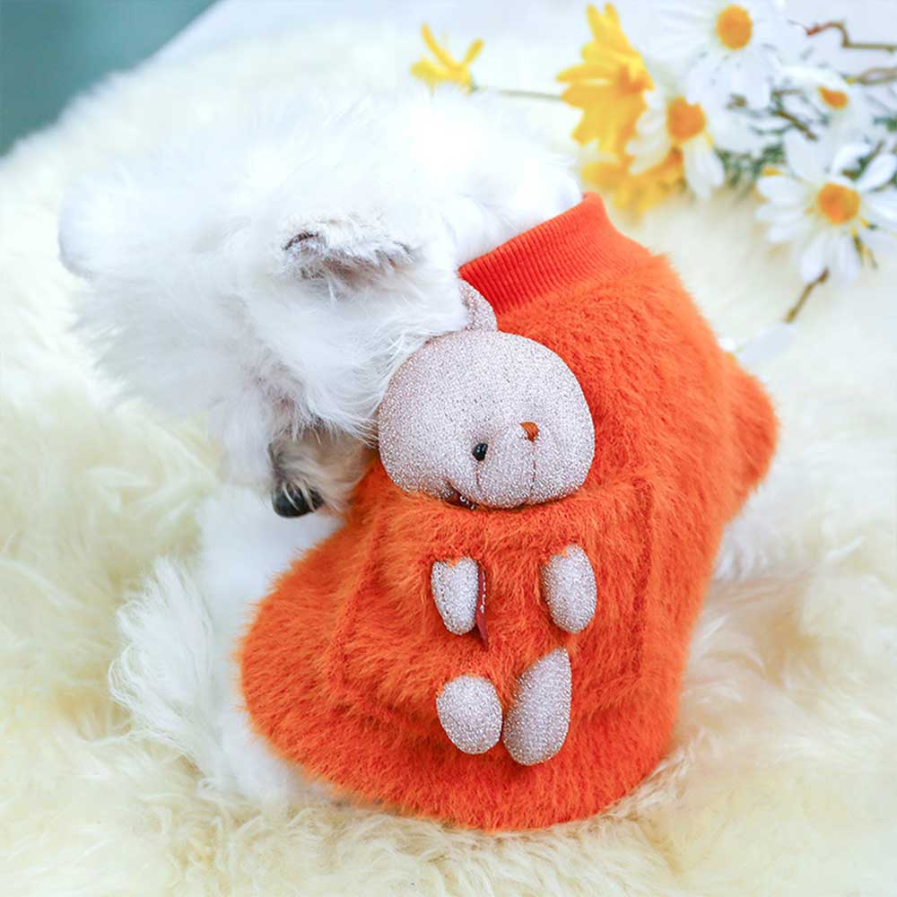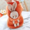 Bluza pufoasă portocalie pentru căței oferă căldură și confort în zilele răcoroase, având un design vesel și atrăgător. Pe spate este un iepuraș simpatic, care adaugă o notă jucăușă și prietenoasă. Materialul moale și pufos asigură protecție termică, iar croiala lejeră nu limitează libertatea de mișcare a micuțului tău companion.