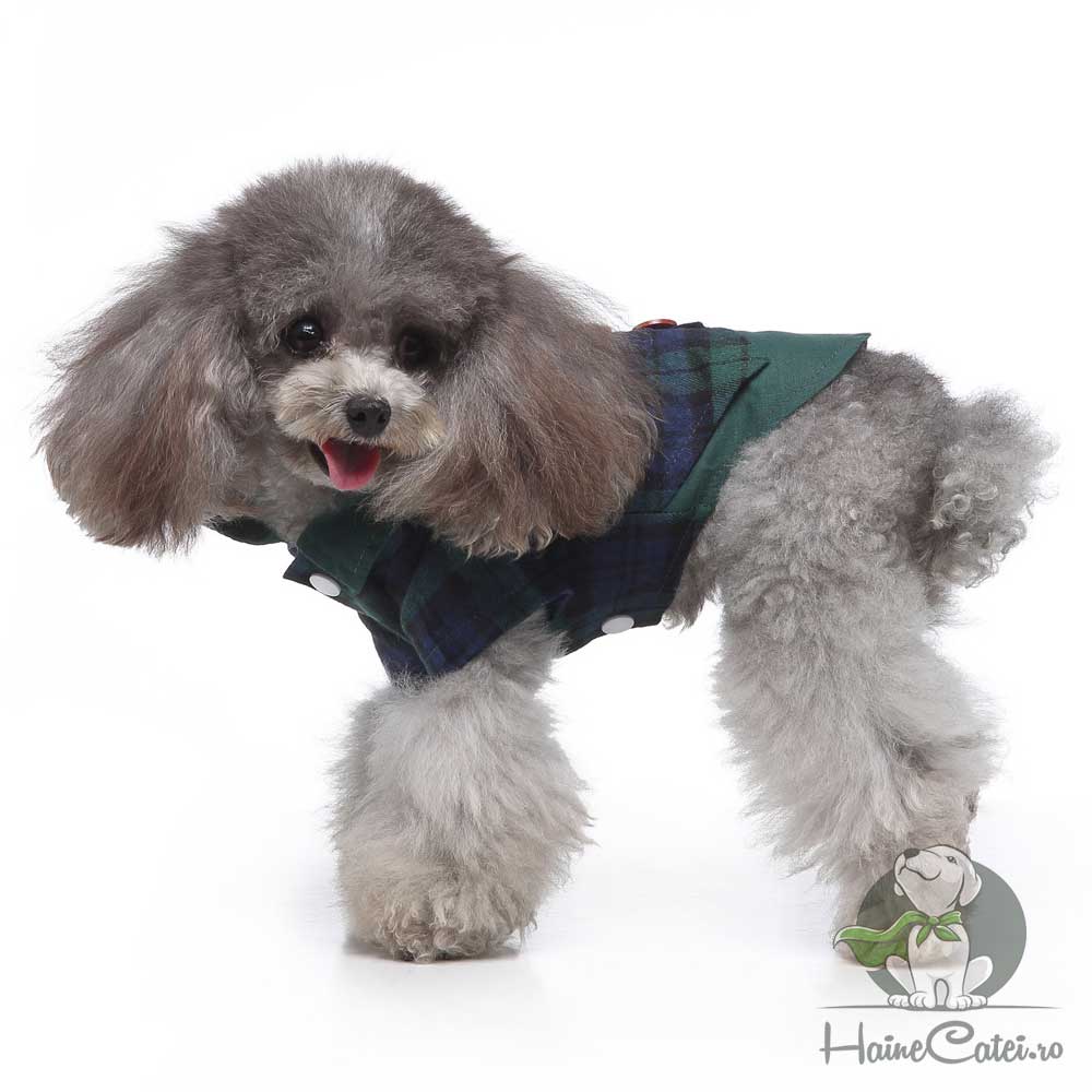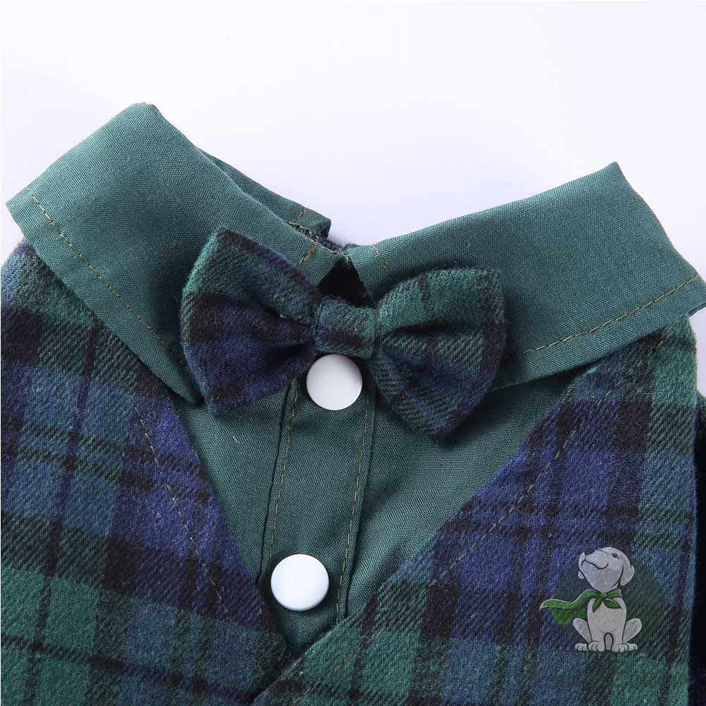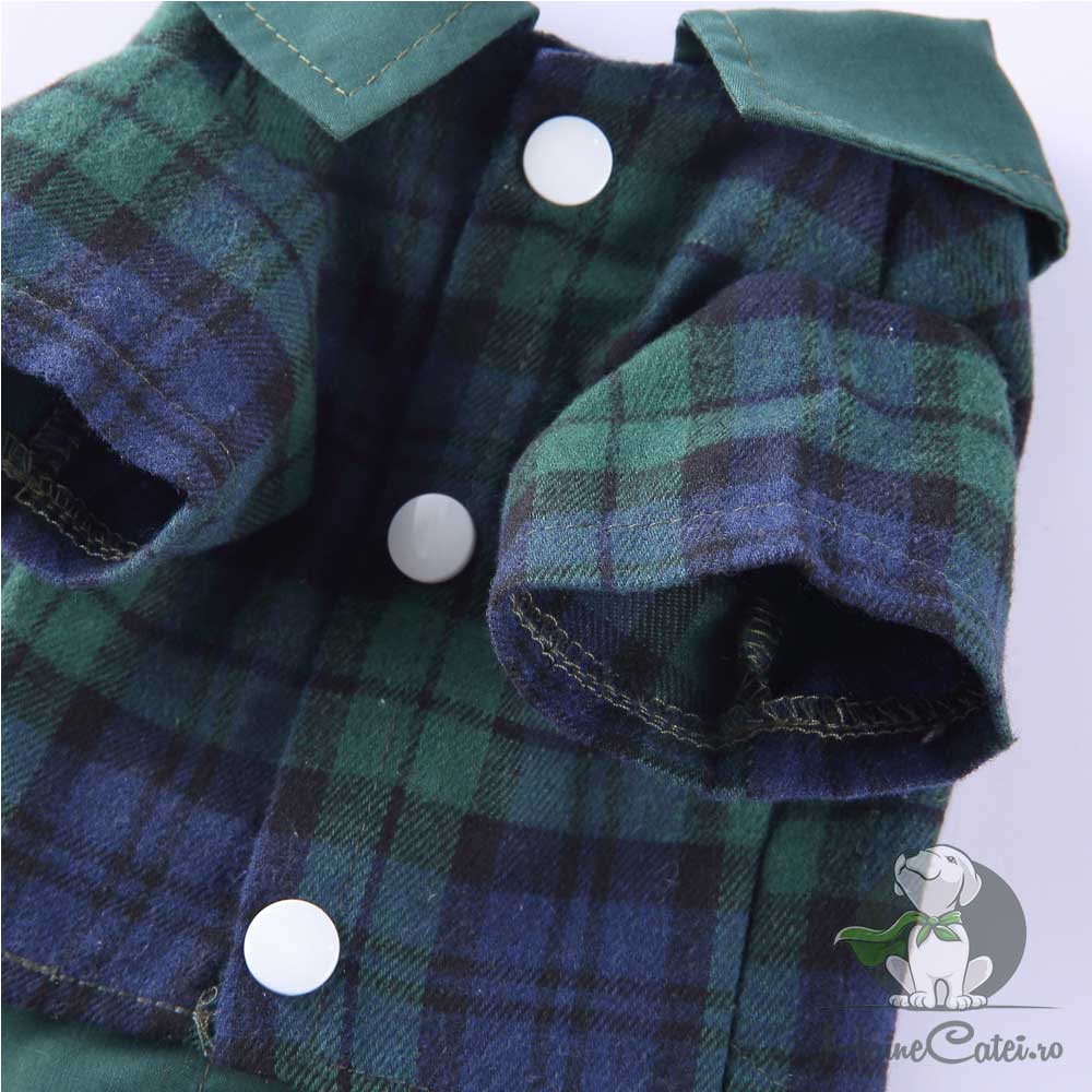 Costumul pentru căței verde cu carouri este o piesă clasică și adorabilă, perfectă pentru ocazii speciale sau ieșiri stilate. Are un design elegant cu model în carouri și o croială lejeră, ce oferă confort și libertate de mișcare. Ideal pentru a-ți transforma cățelul într-un mic domn cu stil.