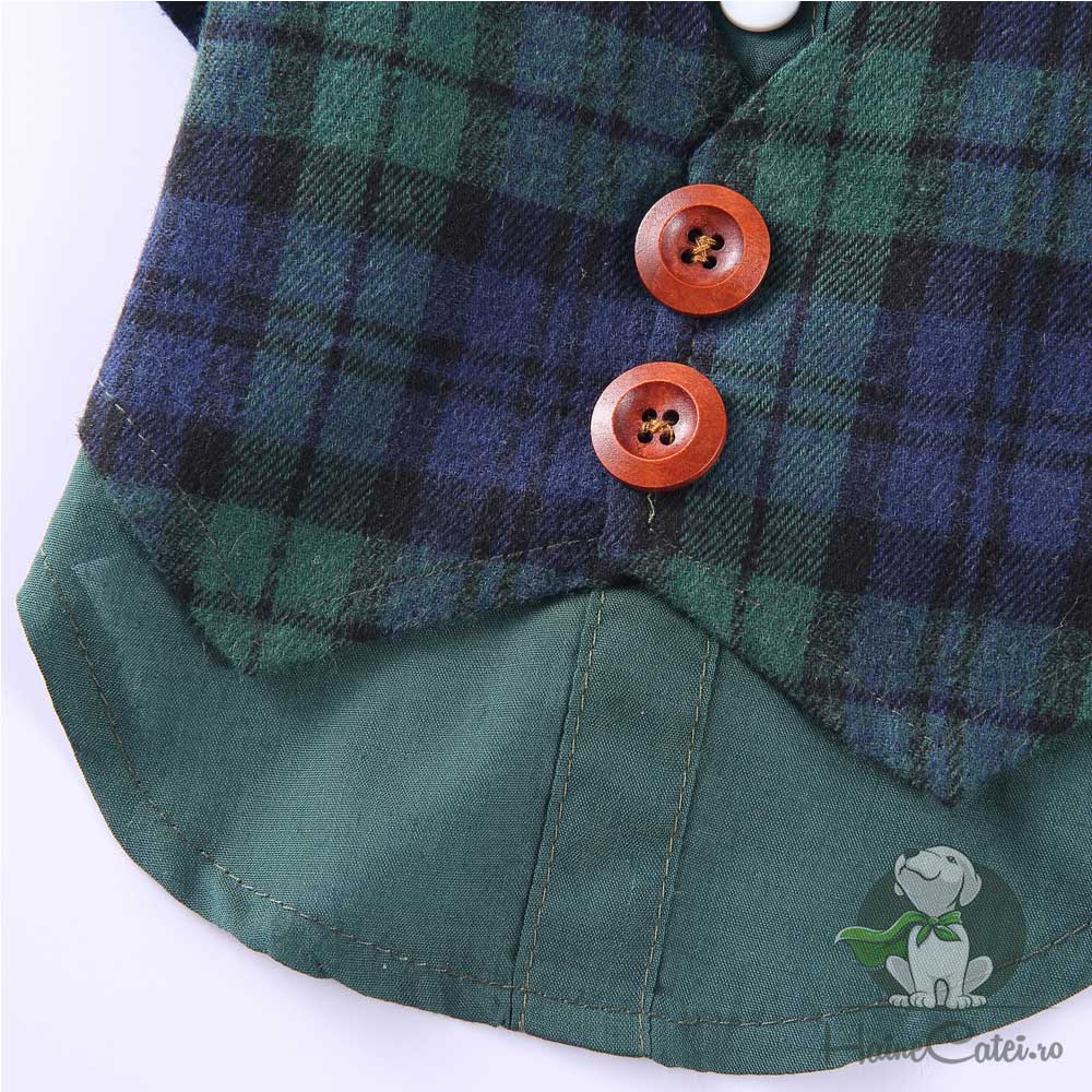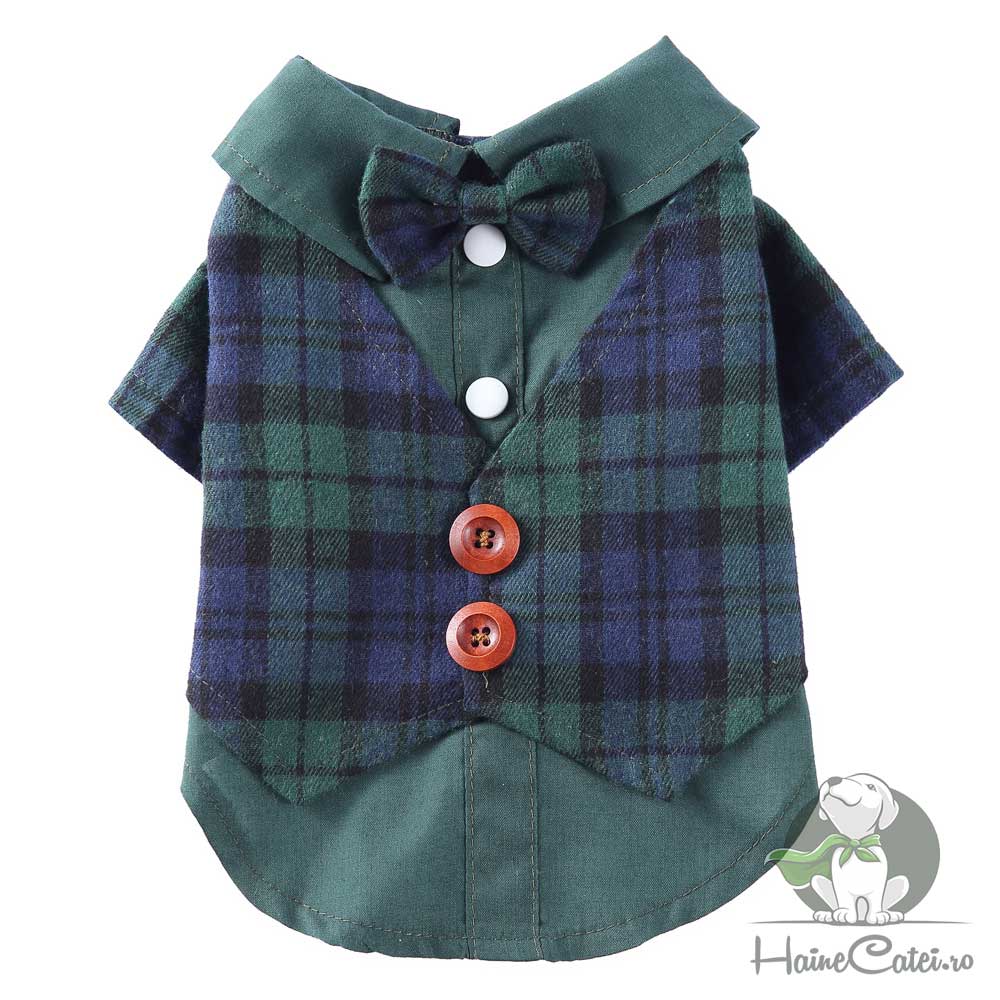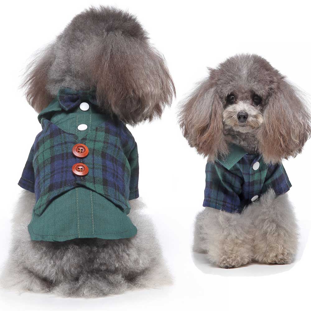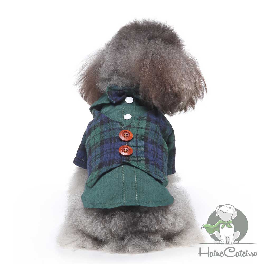 Costumul pentru căței verde cu carouri este o piesă clasică și adorabilă, perfectă pentru ocazii speciale sau ieșiri stilate. Are un design elegant cu model în carouri și o croială lejeră, ce oferă confort și libertate de mișcare. Ideal pentru a-ți transforma cățelul într-un mic domn cu stil.