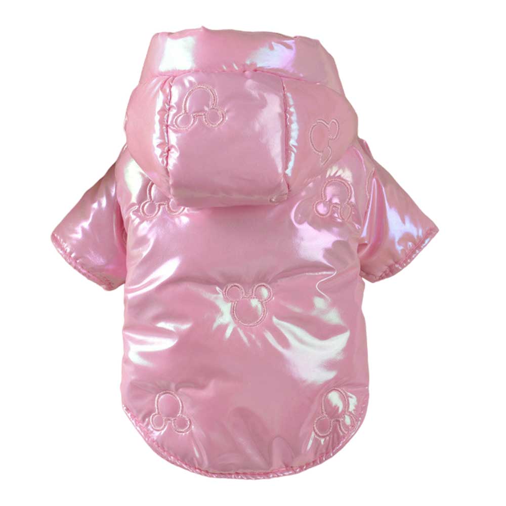 Geacă matlasată, impermeabilă, cu glugă pentru căței, într-o nuanță delicată de roz sidefat, perfectă pentru plimbările în sezonul rece. Gluga este accesorizată cu urechiușe drăgălașe, iar închiderea practică cu capse pe burtică face îmbrăcarea ușoară și rapidă.