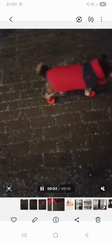 După plimbare de 1h, am văzut ca se simțea inconfortabil cu ei , am verificat si înăuntru erau uzi, deci ii ținea frig.