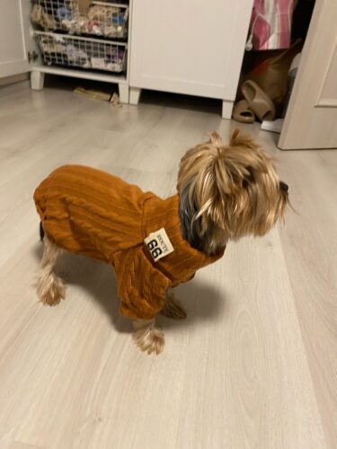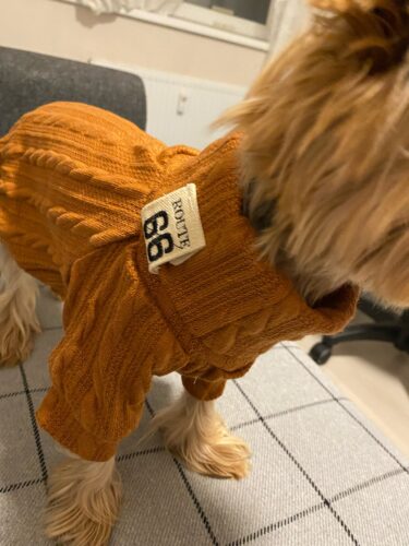 Puloverul tricotat crem pentru căței are la guler un detaliu stilizat cu mesajul „Route 66”, care adaugă o notă vintage și cool. Țesătura moale oferă confort termic în zilele răcoroase, iar designul păstrează un aspect modern și curat. Potrivit pentru plimbări și momente foto cu tematică „road trip”.