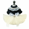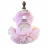 Rochița elegantă pentru căței îmbină rafinamentul cu delicatețea printr-un design adorabil. Partea de sus este decorată cu buline jucăușe, iar partea de jos este realizată din tulle fin, completată de o fundiță grațioasă. Se închide cu capse pe burtică pentru o fixare sigură și ușoară.