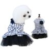 Rochița pentru căței, albă cu dungi negre și tull negru, oferă un look chic și modern patrupedului tău. Pe spate, o floricică delicată adaugă un detaliu elegant, iar închiderea pe burtică cu capse asigură o fixare rapidă și confortabilă.