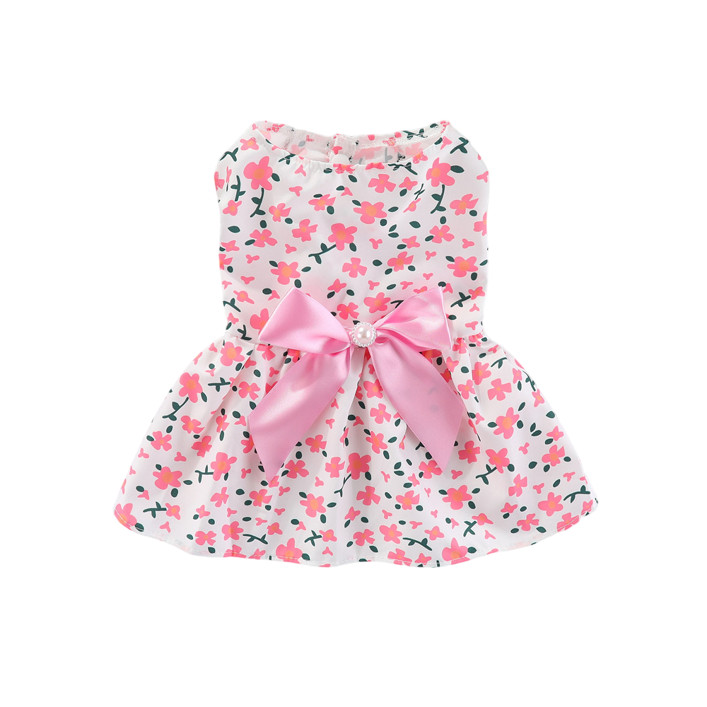 Rochița pentru căței cu flori delicate roz și fundiță elegantă pe spate este ideală pentru a adăuga un strop de farmec oricărei plimbări sau eveniment special. Închiderea practică pe burtică cu capse asigură o potrivire confortabilă și rapidă, iar designul vesel pune în evidență personalitatea jucăușă a patrupedului tău.