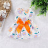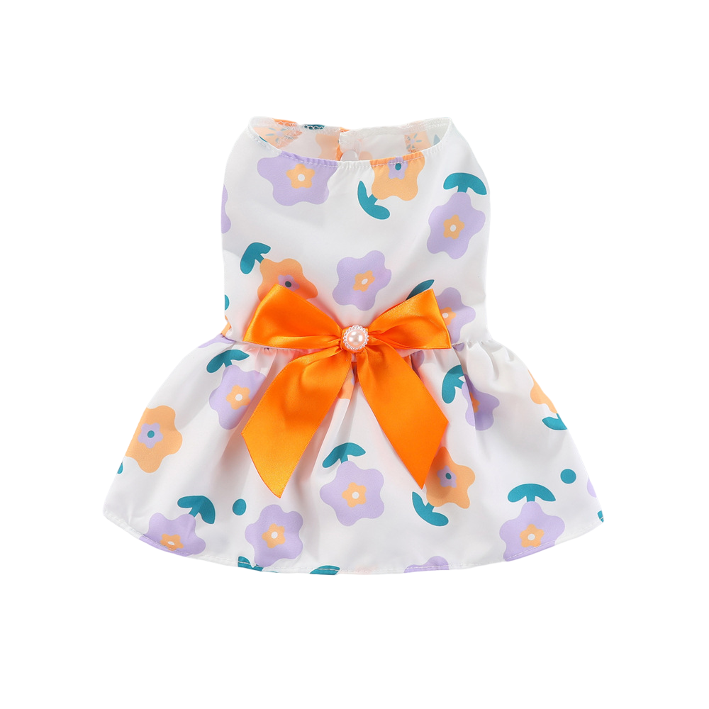 Rochița pentru căței cu flori delicate mov și fundiță elegantă pe spate este ideală pentru a adăuga un strop de farmec oricărei plimbări sau eveniment special. Închiderea practică pe burtică cu capse asigură o potrivire confortabilă și rapidă, iar designul vesel pune în evidență personalitatea jucăușă a patrupedului tău.