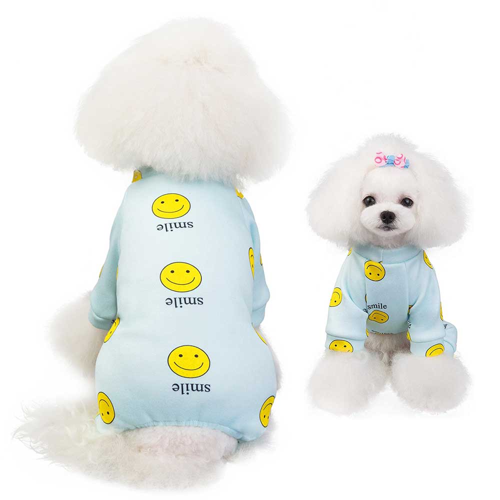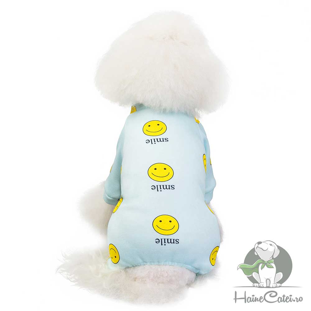 Salopeta albastră pentru căței, decorată cu un imprimeu adorabil de Smile, aduce un plus de personalitate și stil în garderoba patrupedului tău. Este confecționată din material moale și comod, iar croiala lejeră permite mișcare liberă. Închiderea cu capse pe burtică face îmbrăcarea rapidă și practică.