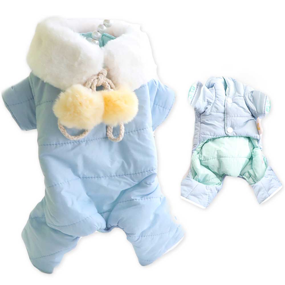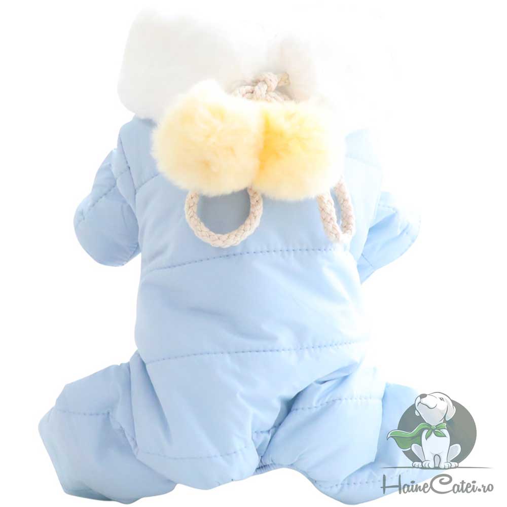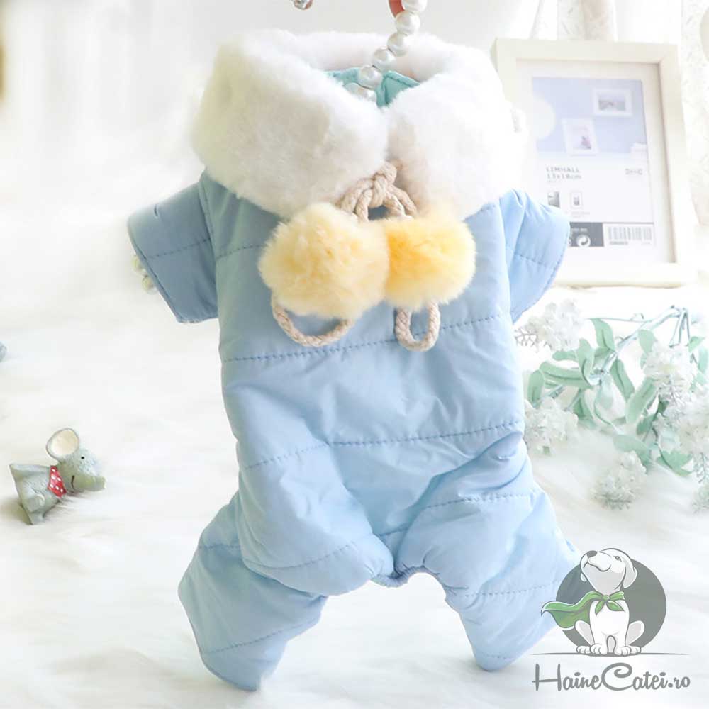 Salopeta matlasată, impermeabilă, albastră, este perfectă pentru cățeii care au nevoie de protecție completă în zilele reci și ploioase. Gulerul detașabil oferă flexibilitate și posibilitatea de adaptare la diverse condiții meteorologice, iar cei doi ciucuri adaugă un plus de stil și originalitate. Materialul rezistent la apă păstrează uscăciunea, iar închiderea cu capse pe burtică face îmbrăcarea rapidă și comodă.