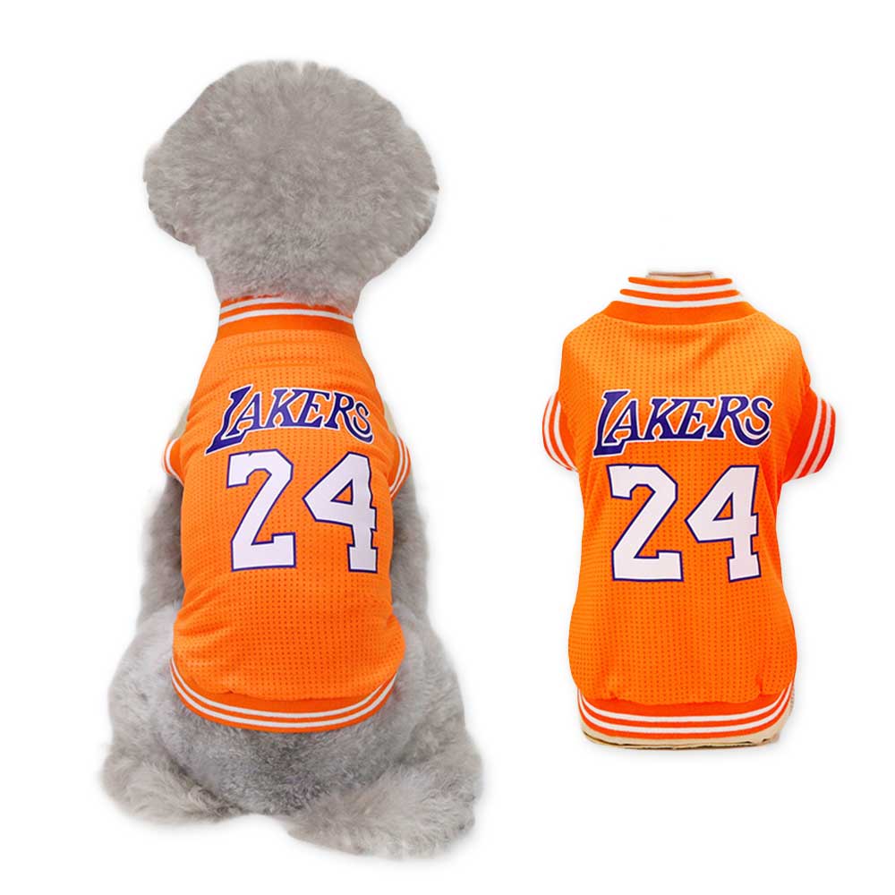 Tricoul de baschet portocaliu pentru căței, inspirat de echipa Lakers, este alegerea perfectă pentru micii campioni cu multă energie. Cu un design sportiv și vibrant, acest tricou aduce atmosfera de stadion direct în parc. Ideal pentru fanii baschetului și cățeii activi.