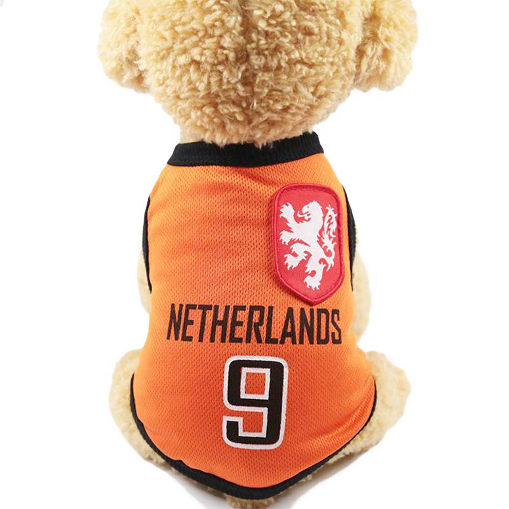 Tricoul de fotbal pentru căței, inspirat de echipa națională a Olandei, este alegerea perfectă pentru suporterii patrupede. În nuanțe clasice, cu numărul 9 imprimat pe spate, acest tricou transformă orice plimbare într-un meci câștigat la capitolul stil. Ușor și confortabil, e ideal pentru mișcare și distracție.