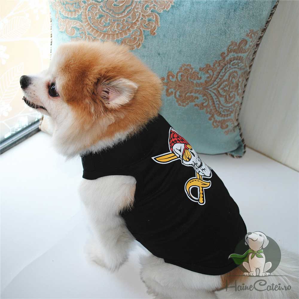 Tricoul negru pentru căței are un design îndrăzneț și plin de atitudine, ideal pentru cățeii cu personalitate puternică. Pe spate are un pirat, oferind un look rebel și cool. Confecționat din material moale și respirabil, este perfect pentru plimbări sau evenimente tematice.