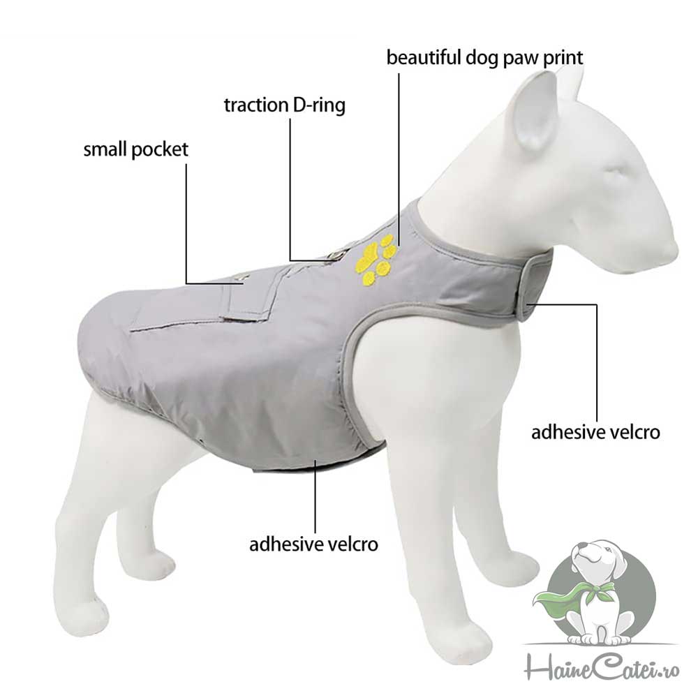 Vesta caini talie mare, impermeabila – Gri