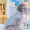 Vestă îmblănită și impermeabilă pentru câini, într-o nuanță elegantă de gri, decorată cu un design delicat de steluțe mici. Pe spate are un patch cu inscripția „Baby”, adăugând un aer dulce și jucăuș. Se închide ușor cu capse pe burtică, oferind confort termic și protecție în zilele reci și umede.