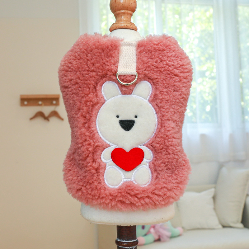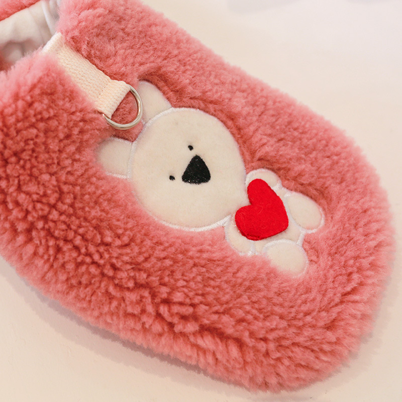 Vestă moale și îmblănită pentru câini, cu un design pufos și detaliu adorabil imprimat cu un ursuleț pe spate. Perfectă pentru plimbările confortabile în sezonul rece.