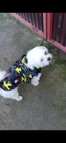 Vestă impermeabilă și îmblănită cu ham incorporat pentru câini, în stil military verde, perfectă pentru plimbările din sezonul rece. Este prevăzută cu un patch decorativ pe spate și are inel rezistent pentru lesa și se închide ușor cu fermoar pe burtică, oferind protecție, stil și funcționalitate într-un singur produs.